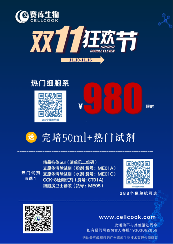 抄底雙 11|賽庫生物細胞 / 血清 / 抗體限時搶